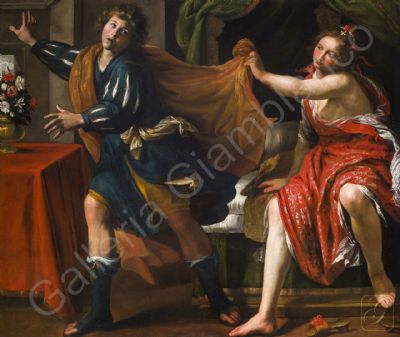 La tela qui presentata, raffigurante l’episodio biblico di «Giuseppe e la moglie di Putifarre» (Genesi 39, 6-20), deve essere collocata cronologicamente proprio negli anni trenta del Seicento, nella fase della prima maturità del maestro: essa sembra reinterpretare, rinnovandolo, un dipinto da stanza del Vermiglio rappresentante lo stesso soggetto, oggi conservato in collezione privata e probabilmente realizzato per un committente milanese… (vedere catalogo Giamblanco 2015)